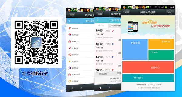 北京鲲鹏之旅航空服务有限公司,是经民航华北管理局批准的专业机票代理公司。目前可代理全球100多家国内和国际航空公司的机票业务。公司拥有专业人员提供24小时机票查询、预订、改签服务,沟通方式灵活多样,包括电话、传真、网站、QQ、微信等多种方式预订、下单。针对会员实行积分奖励,并支持机关单位月结合作。