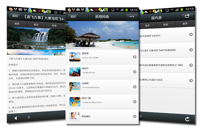 旅游线路信息发布、路线展示,可自定义栏目名称(大类,小类)、全后台管理 | |