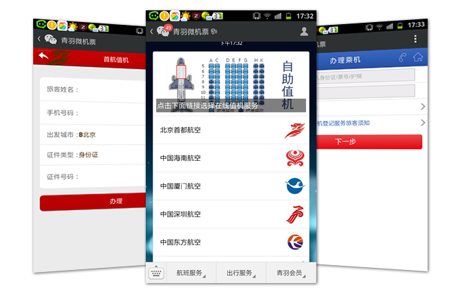 整合全国主要航空公司自助值机功能,让客户一站式搞定所有服务,增加用户粘性.